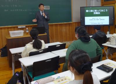 1月19日(月)、定時制1~4年生全員を対象に、社会保険労務士法人アイディールフォレスト 代表社員 物江 学 先生をお迎えし、「働く前に知っておこう労働法」というタイトルで、労働セミナーを実施しました。