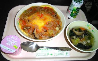 ☆茨城県美味しお献立メニュー:ガパオライス、カラフルサラダ、春雨スープ、フルーツヨーグルト