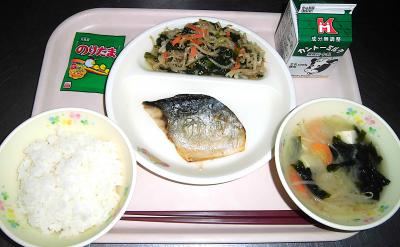 ☆鮭のマヨネーズ焼き、ひじきの炒り煮、大根と小松菜の味噌汁
